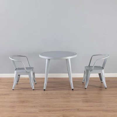 Give your little ones their own perfectly-sized activity space with the ACEssentials Kids Table and Chair Set. This set includes one activity table and two coordinating chairs to provide a creating, playing, and dining space for your toddler and their friends. The spacious table surface is great for crafting, reading, solving puzzles, eating, homework and more. This versatile kids furniture set is great for use in any home, playroom, day care, or school environment. The industrial style table and chairs feature a powder-coated white metal finish, so they can be used both indoors and outdoors. The set is also easy to wipe clean and sanitize for everyday messes. Designed with kids in mind, the table measures 16.93″” x 15.75″” x 21.65″” and each chair measures 25.59″” x 25.59″” x 20.98″” when assembled, providing comfortable seating for your little ones. Add a modern flair to your child’s space with the ACEssentials Kids Table and Chair Set!