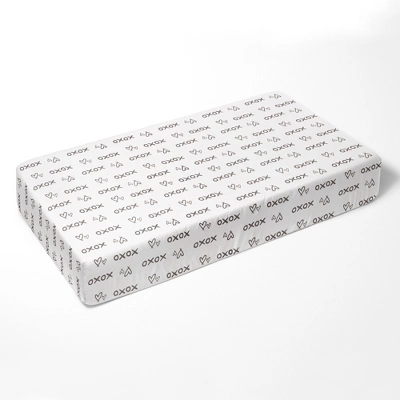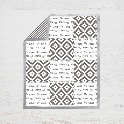 - This Bacati 4-piece Crib Set Includes Reversible Comforter/Playmat (33 x 43 inches), Crib fitted sheet (52 x 28 x 6 inches), Crib Skirt/Dust ruffle (13 inch drop) and Diaper Stacker (holds more than 30 newborn diapers) in fun, colorful and signature prints in 100 percent cotton 200 Thread Count percale fabrics. Designed in United States by Experienced Designers. Many coordinating items available to purchase separately in this Bacati Love Aztec Gray/Silver Bedding Collection.