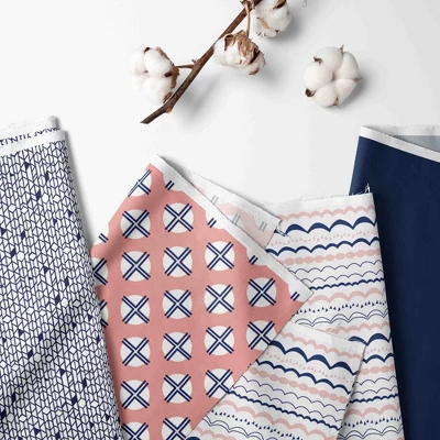 - Many coordinating items available to purchase separately in this Bacati Olivia Coral Navy Bedding Collection.