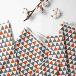 - This Bacati 4-piece Toddler Bedding Set Set Includes Reversible Oversize Comforter (42 x 55 inches), Toddler Bed Fitted Sheet(52 x 28 x 6 inches), Toddler Bed Flat Sheet(52 x 42 inches) which is fitted at the bottom to make the bed easily and Standard Pillow Case (20 x 25 inches) with french ties on the back in fun, colorful and signature prints in 100 percent cotton 200 Thread Count percale fabrics. Designed in United States by Experienced Designers. Many coordinating items available to purchase separately in this Bacati Playful Fox Orange Gray Bedding Collection.