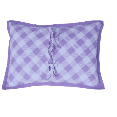 - This Bacati 5-piece Toddler Bedding Set Set Includes Reversible Oversize Comforter (42 x 55 inches), Toddler Bed Fitted Sheet(52 x 28 x 6 inches), Toddler Bed Flat Sheet(52 x 42 inches) which is fitted at the bottom to make the bed easily and Standard Pillow Case (20 x 25 inches) with french ties on the back as well as Decorative Pillow 12 x 16 inches in fun, colorful and signature prints in 100 percent cotton 200 Thread Count percale. fabrics. Designed in United States by Experienced Designers. Many coordinating items available to purchase separately in this Bacati Watercolor Floral Purple Gray Bedding Collection.