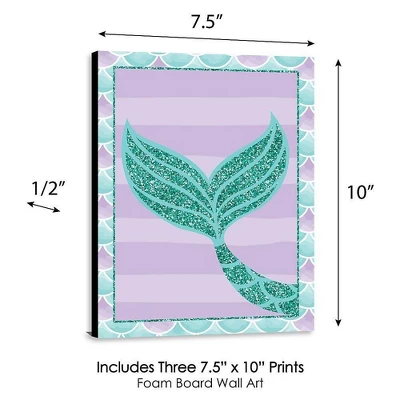Let’s Be Mermaids Wall Art Set INCLUDES 3 ready-to-hang little mermaid themed panels and non-marking wall mounts for easy hanging. Let’s Be Mermaids artwork is perfect for a nursery, kids room or playroom. Let’s Be Mermaids Wall Art & Kids Room Decor SIZE each 10 inches high x 7.5 inches wide x .5 inches thick. Lil mermaid lightweight art prints will arrive ready to use – no frame needed. The black edge gives each print a modern, finished look. EASY TO HANG: Simply attach a non-marking wall mount (included) to each corner of a Let’s Be Mermaids art panel and press to hang in desired location. Wall mounts are repositionable, so you can redesign your artwork display at any time. PREMIUM HOME DECOR: 3-piece Let’s Be Mermaids Wall Art Set is professionally printed on thick material with a black edge. You will not need to frame this set of little girl mermaid room decor. Each standout print is ready to hang and will add a contemporary touch to any room. MADE IN THE USA: Let’s Be Mermaids Nursery Wall Art & Kids Room Decor is designed and manufactured at our Wisconsin facility using materials that are Made in the USA. Mermaid wall decor uses a No-Mess Glitter Print: Our artwork is designed with a printed image of glitter, eliminating glitter flake while maximizing bling effect!