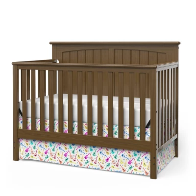 Beautiful wood finishes meet bold design in the Child Craft Sheldon 4-in-1 Convertible Crib. Crisp lines and contemporary trim work make this collection shine alone or with a decorated theme. It is sure to give any nursery a distinguished look and feel. Crafted of high quality pine and pine veneers, this crib transitions with your child as it converts from a crib, to a toddler bed, day bed, and full size bed (toddler guard rail and full sized bed rails sold separately). A strong metal mattress support adjusts three heights to accommodate the growing needs of your baby. To create a striking nursery for your baby, pair the Sheldon 4-in-1 Convertible crib with complimentary pieces from the Child Craft brand.