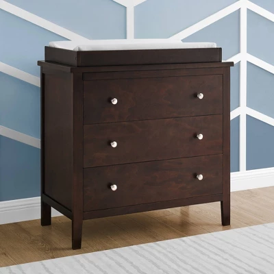 Simplify changing time with the #W100810 Changing Top by Delta Children. Effortlessly transforming your Campbell 3 Drawer Dresser into a convenient changing table, it makes diaper duty doable with its secure and sturdy design. Easy to install and remove, it features felt on the bottom to protect your dresser. Pair with the Campbell 3 Drawer Dresser or any dresser with a top at least 33.75″W x 17.25″D.