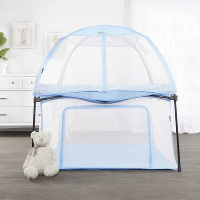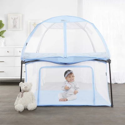 - The four clear mesh sides allow for easy ventilation as well as 360° visibility. Not only does your child feel secure, you can also keep an eye on your child as you complete your household chores.