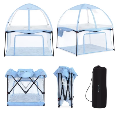 The Dream On Me Ziggy Square Playpen with Canopy sets up in a jiffy. Keep your child protected from the sun, rain and nasty bugs during outdoor play with the help of the Dream On Me Ziggy Canopy. Its thick, comfortable padded floor is gentle on those soft feet, palms, elbows and knees. The mesh walls score high on breathability and also allow you to peek in on your child as you complete your household chores. The playpen is spacious and stable enough for you to sit inside and play with your child.