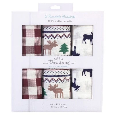 Little Treasure muslin swaddle blankets are made of soft, gentle and breathable 100% muslin cotton fabric to help your baby sleep more comfortably. Our blankets are sized at 46×46 to make swaddling easy, cozy and comfortable. Our blankets are safe and gentle on baby’s skin. Little Treasure muslin blankets can also be used as a nursing cover, stroller cover, and for tummy time. Little Treasure Baby Boy Cotton Muslin Swaddle Blankets, Moose Sweater is the perfect addition to your little one’s nursery. Little Treasure offers the widest assortment in Christmas apparel, Christmas outfits and sweaters, Christmas pajamas, Christmas blankets and throw blankets, and Christmas socks. Our vast product assortment for babies, toddlers and kids make for great stocking stuffers for the whole family.