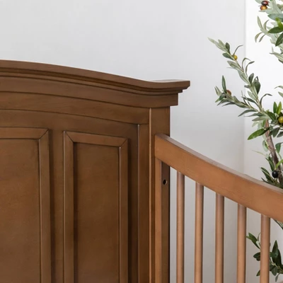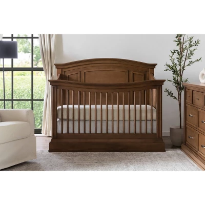 With its stately presence, the Durham 4-in-1 Convertible Crib introduces a dignified air into your nursery. The crib’s front rail curves to underscore its thoughtfully designed molding, while its elegantly arched headboard and contoured rails create a tranquil space for your baby to sleep. The Durham Crib pairs with the Foothill/Louis 6-Drawer Dresser.