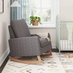 Storkcraft Hoop Glider And Ottoman – Black Frame/Light Gray Fabric