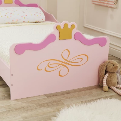 The KidKraft Princess Toddler Bed adds a touch of royal elegance to any kid’s room. The low profile encourages independence in the bedtime routine for growing kids. Any child will feel like a princess in this rich pink-toned bed with gold filigree and crown flourishes. It’ll help transform any bedroom into a royal palace.
