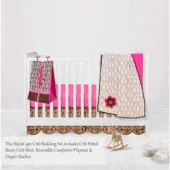 Bacati – Damask Pink Fuschia Chocolate 10 Pc Crib Bedding Set With 2 Crib Fitted Sheets