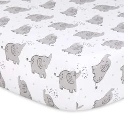 The Peanutshell Fitted Playard Sheets – Gray Elephant Walk – 2pk