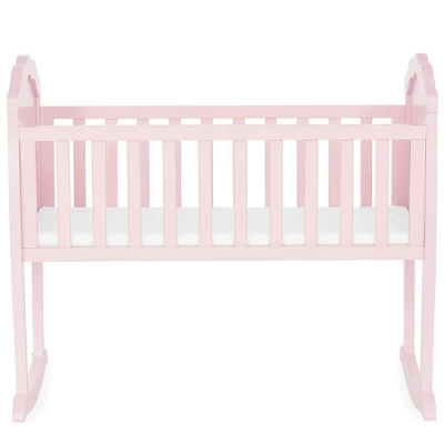 Gently rock your little one into the land of sweet slumber with Sweetpea BabyÕs Rose Cradle. This sturdy and feminine cradle is made of solid New Zealand Pinewood and can be made stationary with a simple support pin provided on the side. Designed with smooth & steady-paced rocking motions, the Rose Cradle is the perfect co-sharing piece for any new family. Safety and convenience conscious, this cradle is JPMA certified, meets or exceeds all CPSC & ASTM standards, is easy to assemble, and comes with a 1Ó thick slumber pad! Crafted to add that extra bit of delight to any dŽcor, the Sweetpea Baby Rose Cradle boasts of intricate Rose detailing and rounded spindles. WhatÕs more, itÕs available in 3 lovely, non-toxic finishes Ð Blush Pink, Platinum, and White. The cradle is recommended for newborns up to 20 lbs., or until the baby can roll from side to side or can push up.