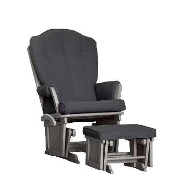 Perfect for rocking baby to sleep, watching tv or reading, the Victoria glider and ottoman offers an exceptionally smooth and extra long glide motion with extra plush cushions and padded arms, available in white and navy cushion colors. The polished, yet sumptuous curves of the glider and ottoman offers a toxic free finish that exceeds all mandated safety requirements. The combination of its contemporary design and ash gray finish would be the perfect complement to any room, including your baby’s nursery.